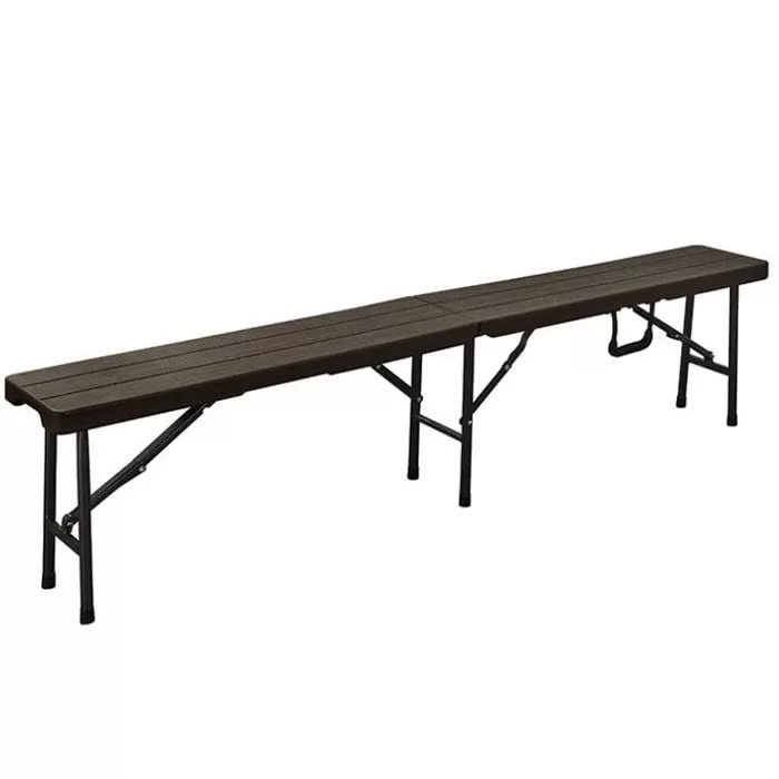 This sturdy, easy to clean, plastic bench is perfect for taking on a camping trip, or just to use in your garden. It has a realistic wood design which complements any outdoor area. The bench has a folding feature which makes it easier to store away when not in use.