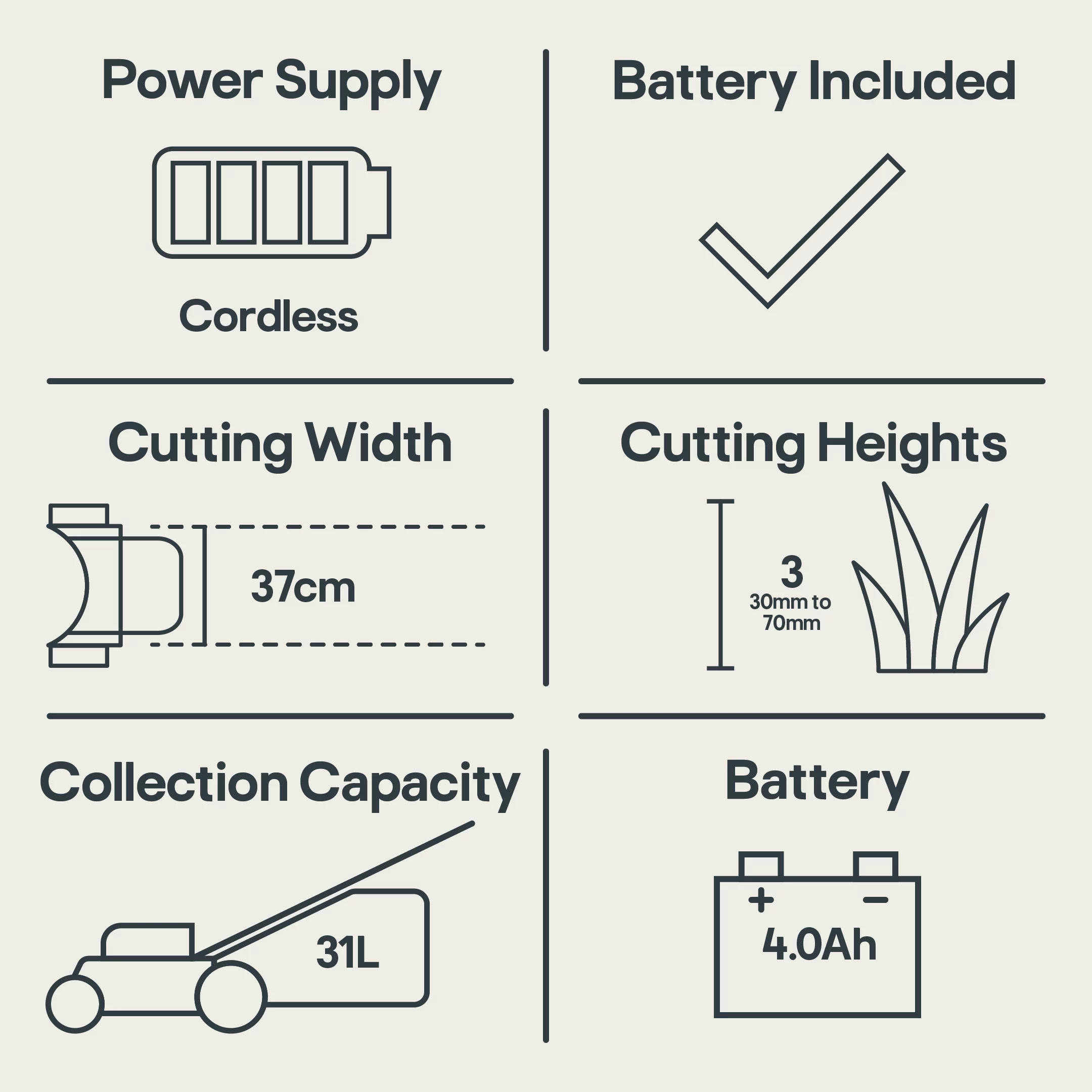 - Matching blade: Bosch 36 LI 370mm Lawnmower blade