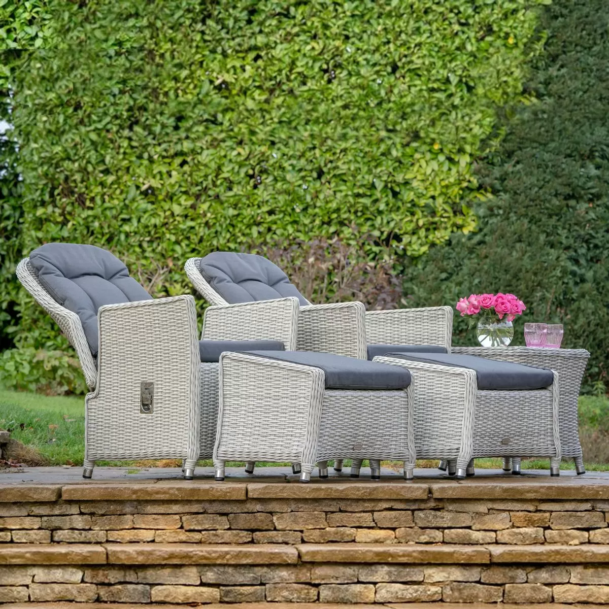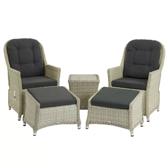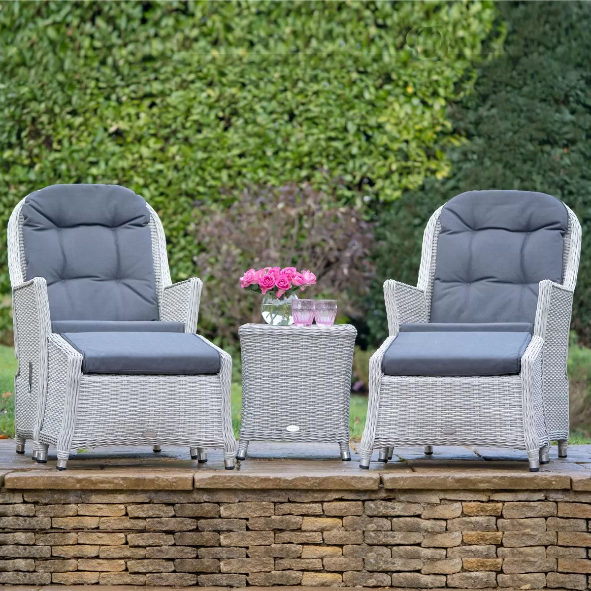 Create a gorgeous seating area and make the most of your patio or garden space with the 2 seater Monterey Recliner Set from Bramblecrest. Whether you have the perfect view to ponder or just enjoy relaxing in the outdoors, this timeless design will create a luxurious and enjoyable resting spot. Enjoy a refreshing drink or two with the convenient ceramic top coffee table or put your feet up and recline. The smooth, piston-operated, reclining mechanism allows you to easily lie back into the top to toe foam-core cushions. A truly classic set with a contemporary style.