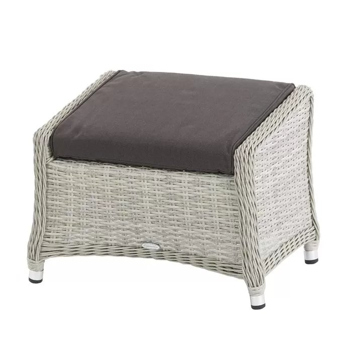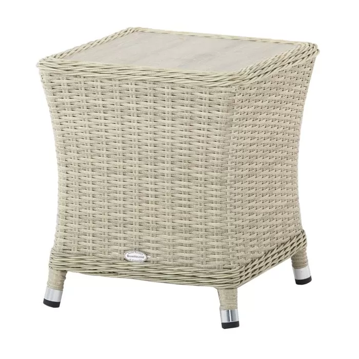 Lightweight aluminium frame with weatherproof and UV resistant wicker and ceramic table top. Polyester covered cushions with fibre and memory foam layered filling, lined with a plastic membrane designed to prevent water ingress.
