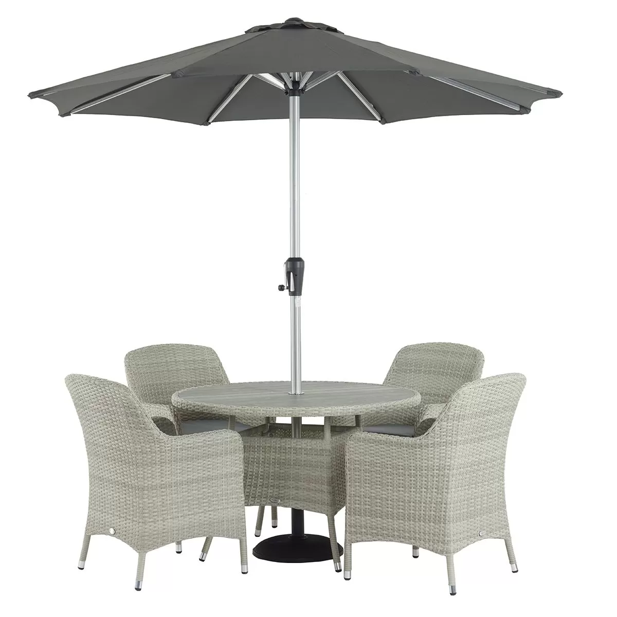 Bramblecrest Tetbury 4 Seater Round Dining Set with Parasol & Base