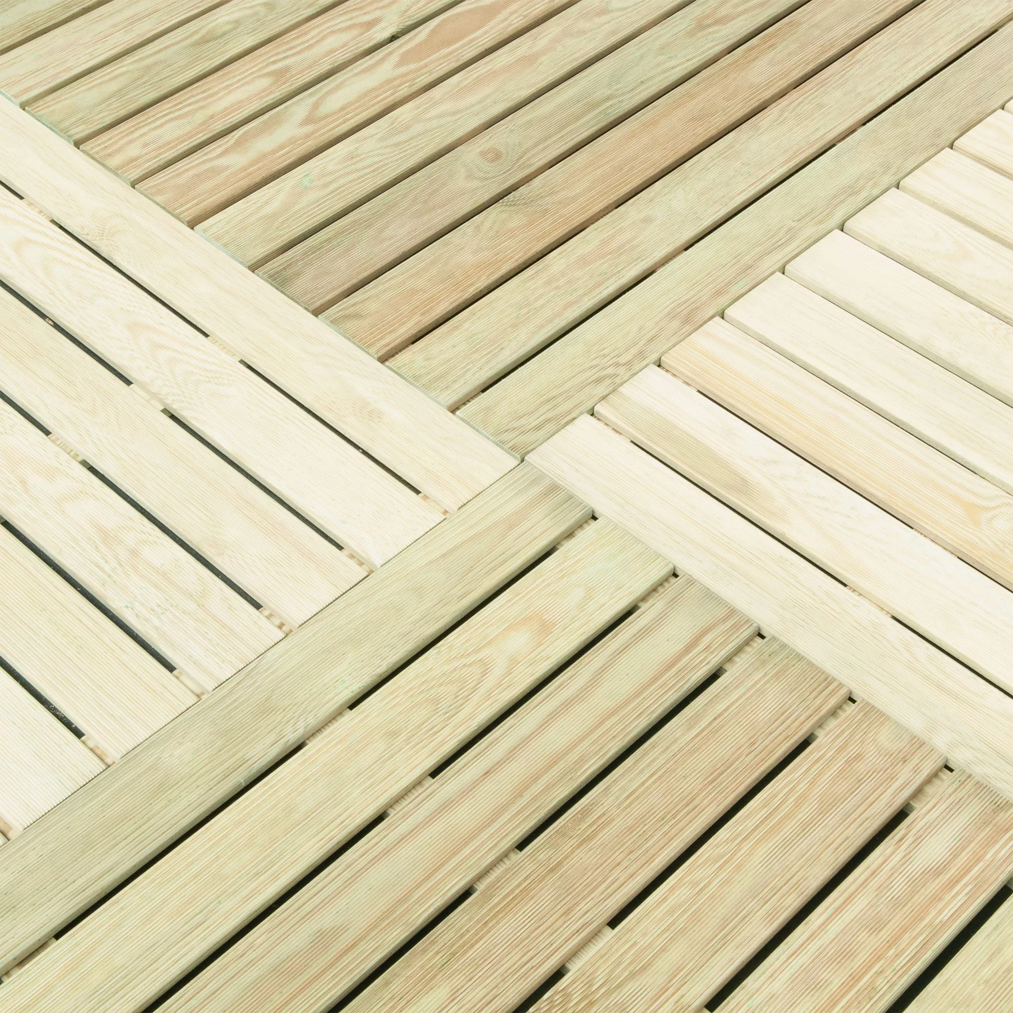 - Hardened, levelled base providing water outflow (gravel compound or concrete topping recommended). Deck tile should be put on joists or ground. If screwing into joists, make sure to drill holes first before placing the screws as this prevents wood from cracking.