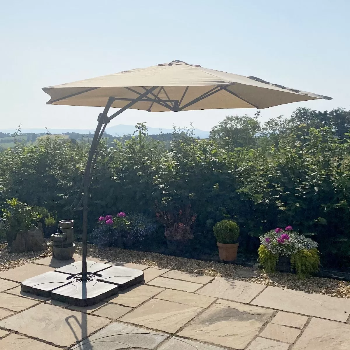 Getting a little shade in your garden has never been easier than with this stunning Easy Up Cantilever Parasol. Ideal for providing cover on exceptionally sunny days, this parasol with its 2.7m beige coloured canopy is perfect for use whilst you’re enjoying time outdoors with family and friends.