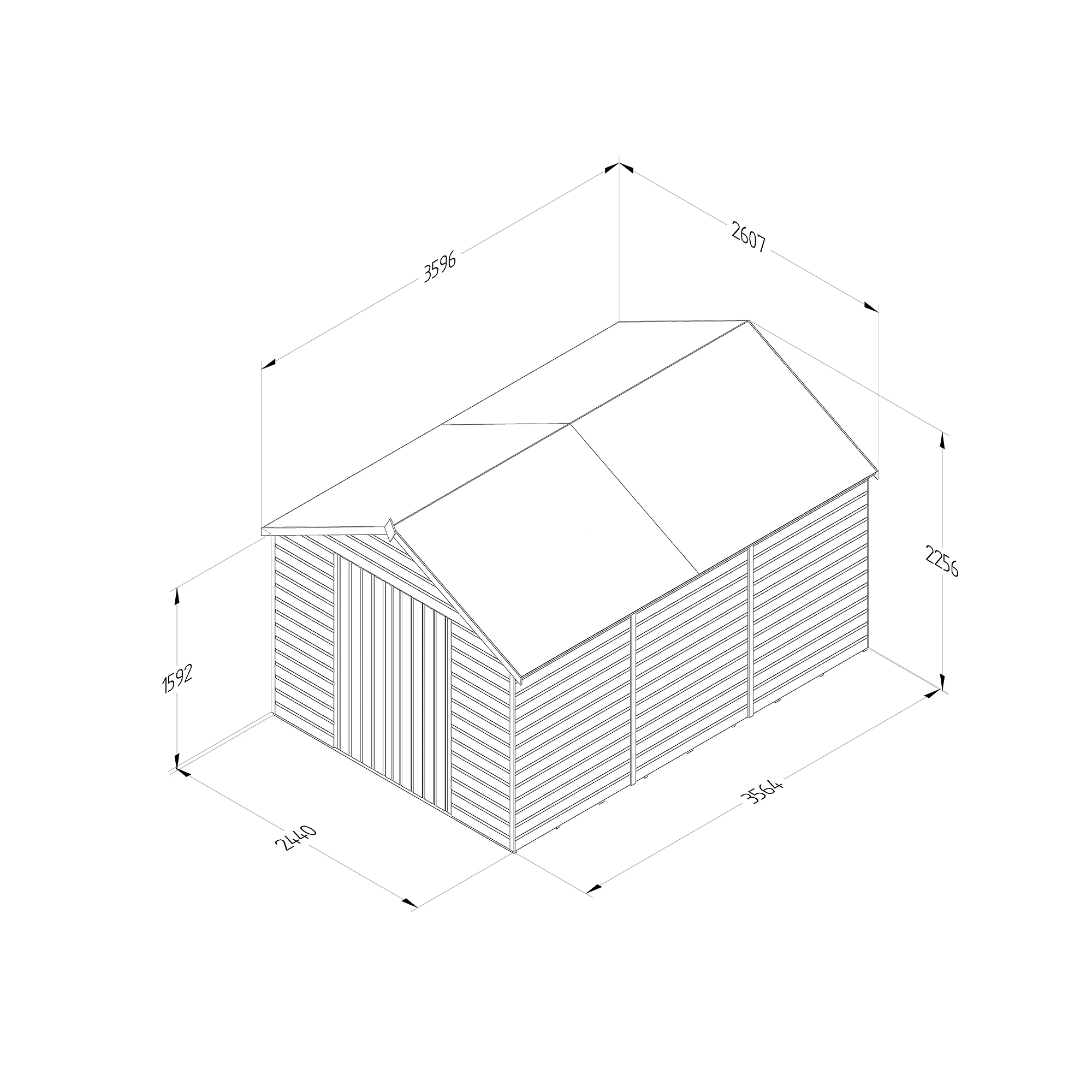 The high quality Dip Treated 12×8 Shiplap Tongue & Groove Apex Workshop with Double Doors from Forest offers a great deal of interior space for storage of large outdoor items as well as room for use as a workshop with shelving and workbench. The shed’s improved design features smaller wall sections, making it easier to handle and assemble. An attractive smooth-planed finial and barge boards finish the look of this shed.