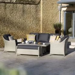 Bramblecrest Amsterdam 8 Seater Corner Lounge Set With Fire Pit
