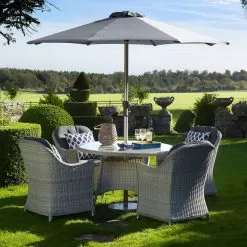 Bramblecrest Chedworth 4 Seater Round Dining Set With Parasol & Base