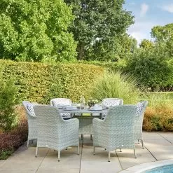 Bramblecrest Tetbury 4 Seater Round Dining Set With Parasol & Base