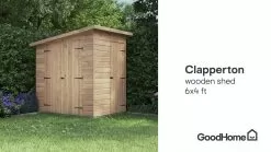 GoodHome Clapperton 6×4 Ft Pent Shiplap Wooden 2 Door Shed With Floor (Base Included)