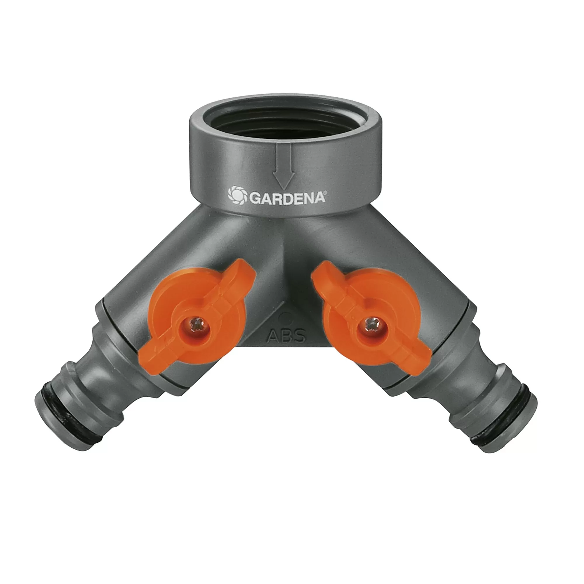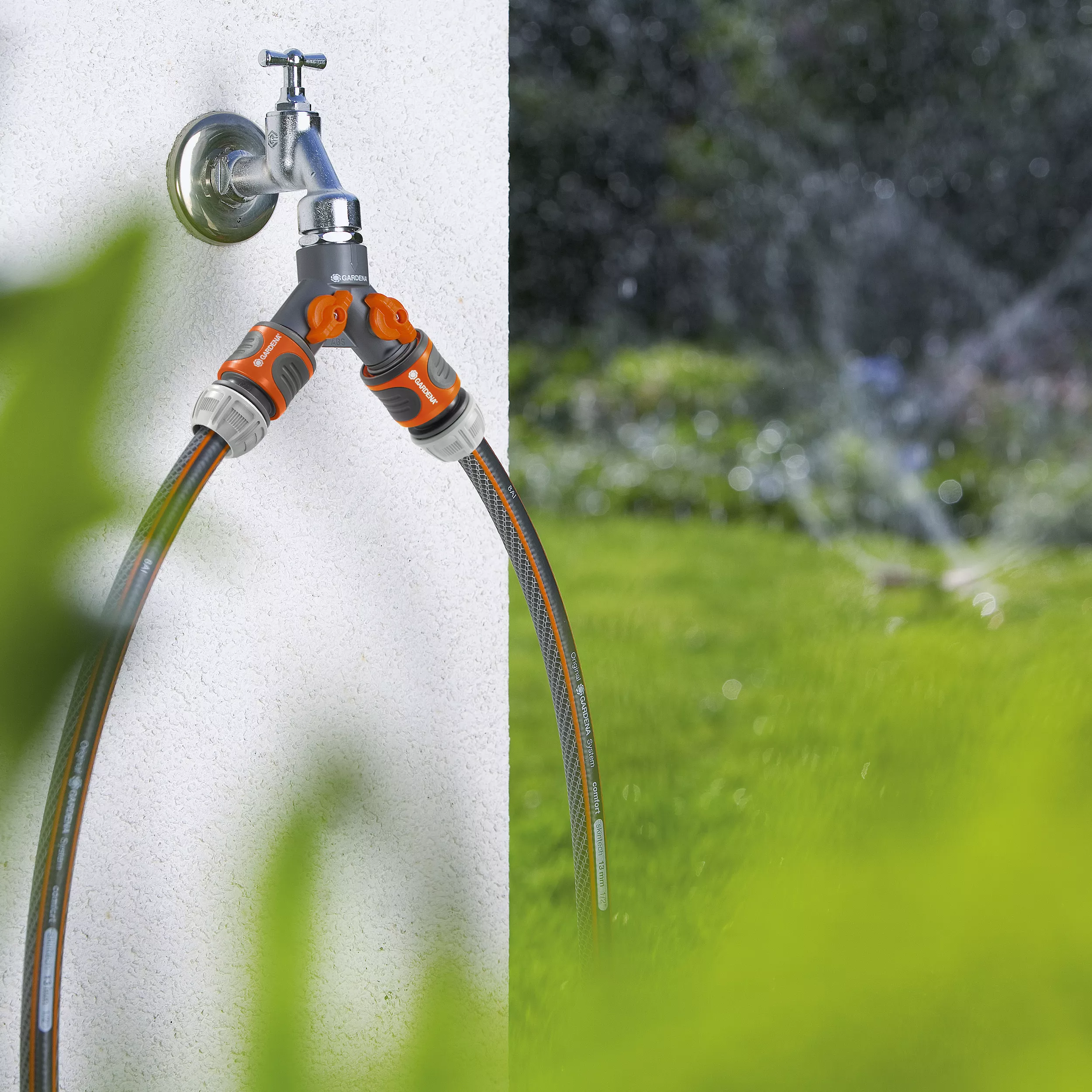 The Gardena Twin Tap Connector allows two different hose attachments to be connected via just one tap.