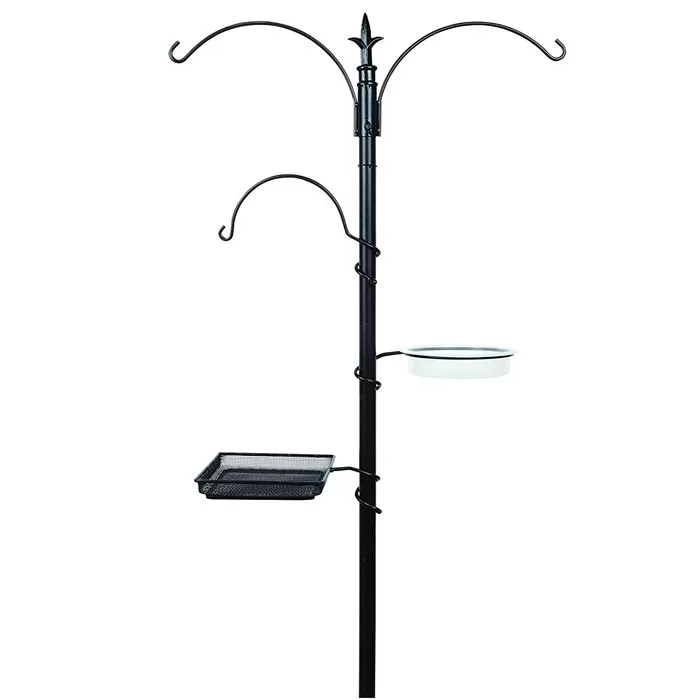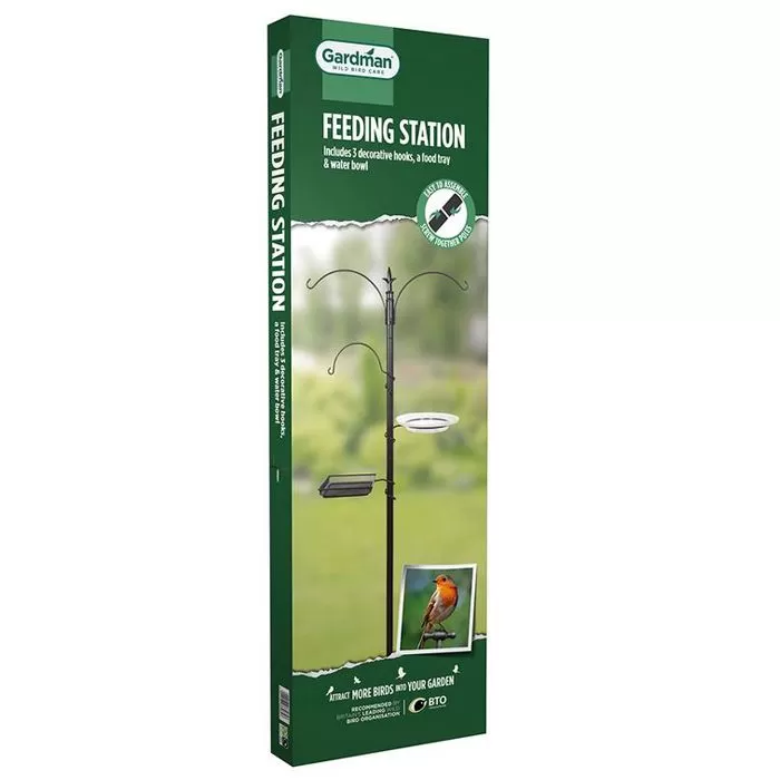The Gardman Feeding Station is an excellent choice for feeding wild birds if you do not have trees to hang feeders, or if you want to attract birds to a spot where you can happily watch them. It has three hooks to hang your feeders, a mesh feeder tray for mealworm and a birdbath in a circular support ring. The 2 prong ground stabliser allows you to secure your feeder directly into the ground.
