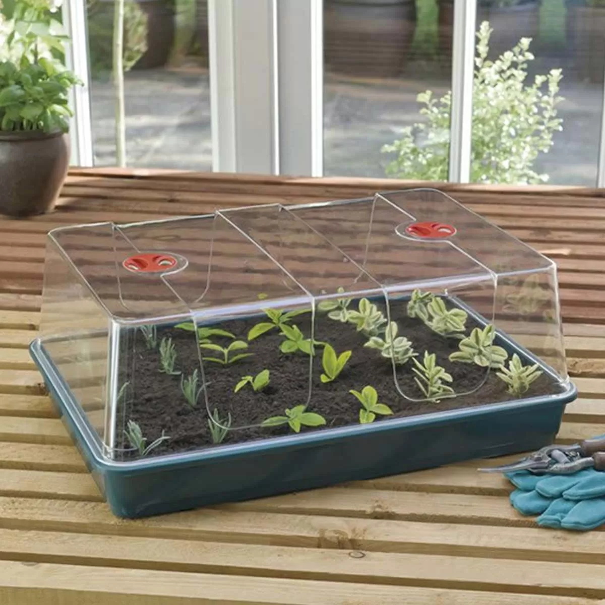 The high cover is crystal clear for optimum light, with easy to adjust dial vents to adjust the environment within. Thanks to the deep solid base it’s ideal for smaller pots and seed trays too.