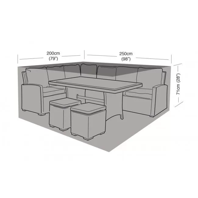 Made from high quality PVC backed polyester material, this Garland Small Casual Dining Set Cover provides full UV protection against the sun for longer life and offers full weather protection. In addition, it includes waterproof taped seams so you do not have to worry about leaving your furniture outside.