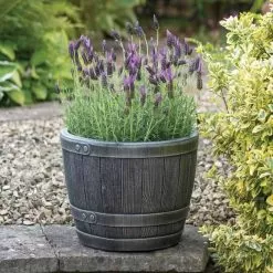 Stewart Garden Blenheim Half Barrel Planter – Pewter, 40cm