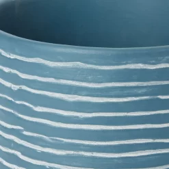 Blue Coral Clay Striped Round Plant Pot (Dia)20cm