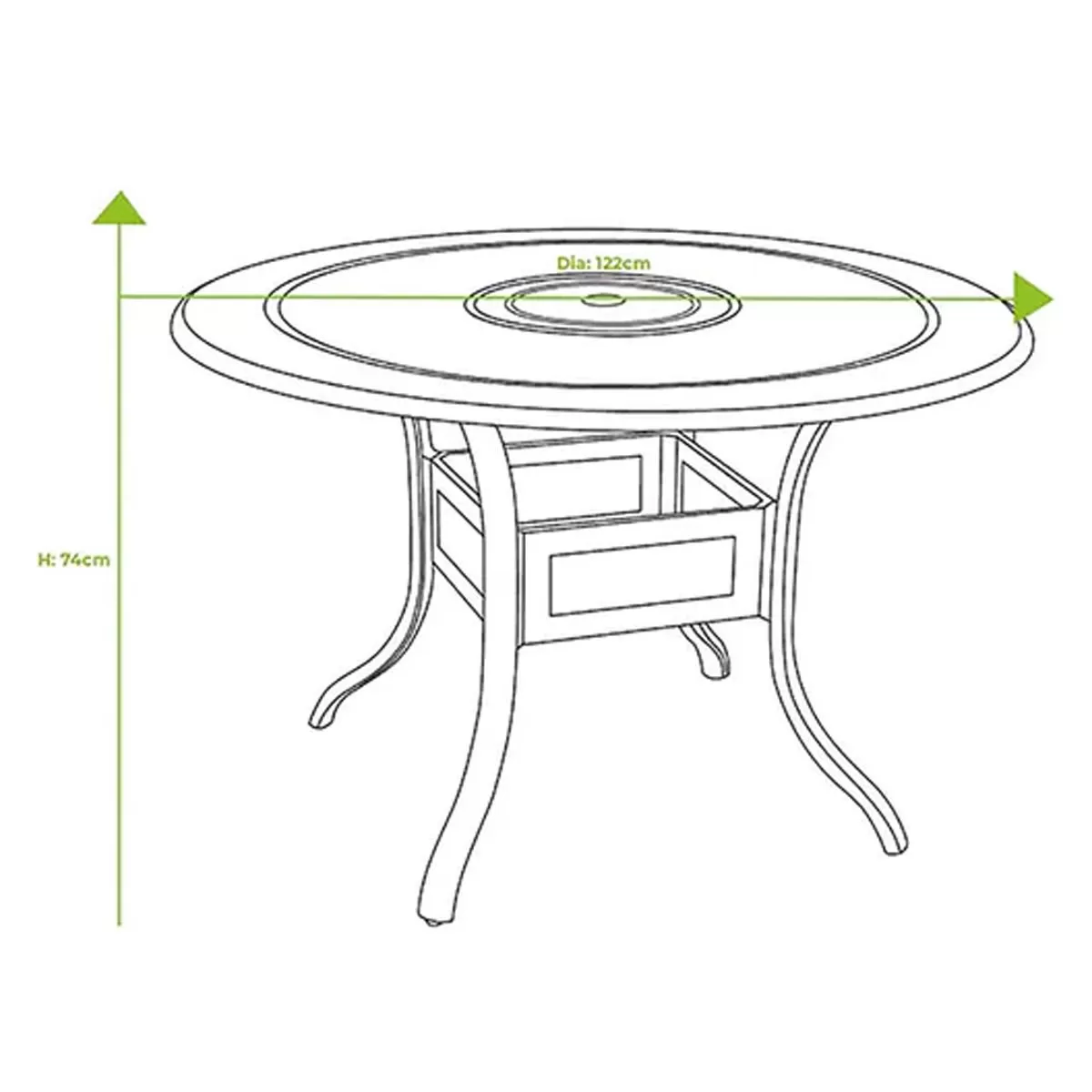 Although strong & sturdy in shape each piece to this set is lightweight enough for ease of moveability due to its aluminium construction, with a powder-coated finish the frame of the set can be left out all year round as it’s rust and frost-proof too. Made with an all-weather microfibre fabric and spun-polyester covers the Hartman Weatherready® cushions will withstand rainfall. From sun showers to downpours and if your cushions become saturated with water simply stand them on their end and let the water drain out. We would always recommend using the Hartman Amalfi 4 Seater Round Dining Set Protective Cover to protect your furniture set from the elements and storing cushions inside or in garden storage to keep them clean and dry ready for their next use.