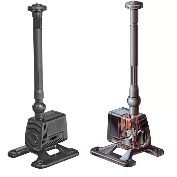 The Hozelock 450 pump is a mains operated pump which comes complete with 3 different fountain heads and integral flow control plus 2 or 3 tier ball jointed telescopic stem. It is ideal for all decorative ponds.