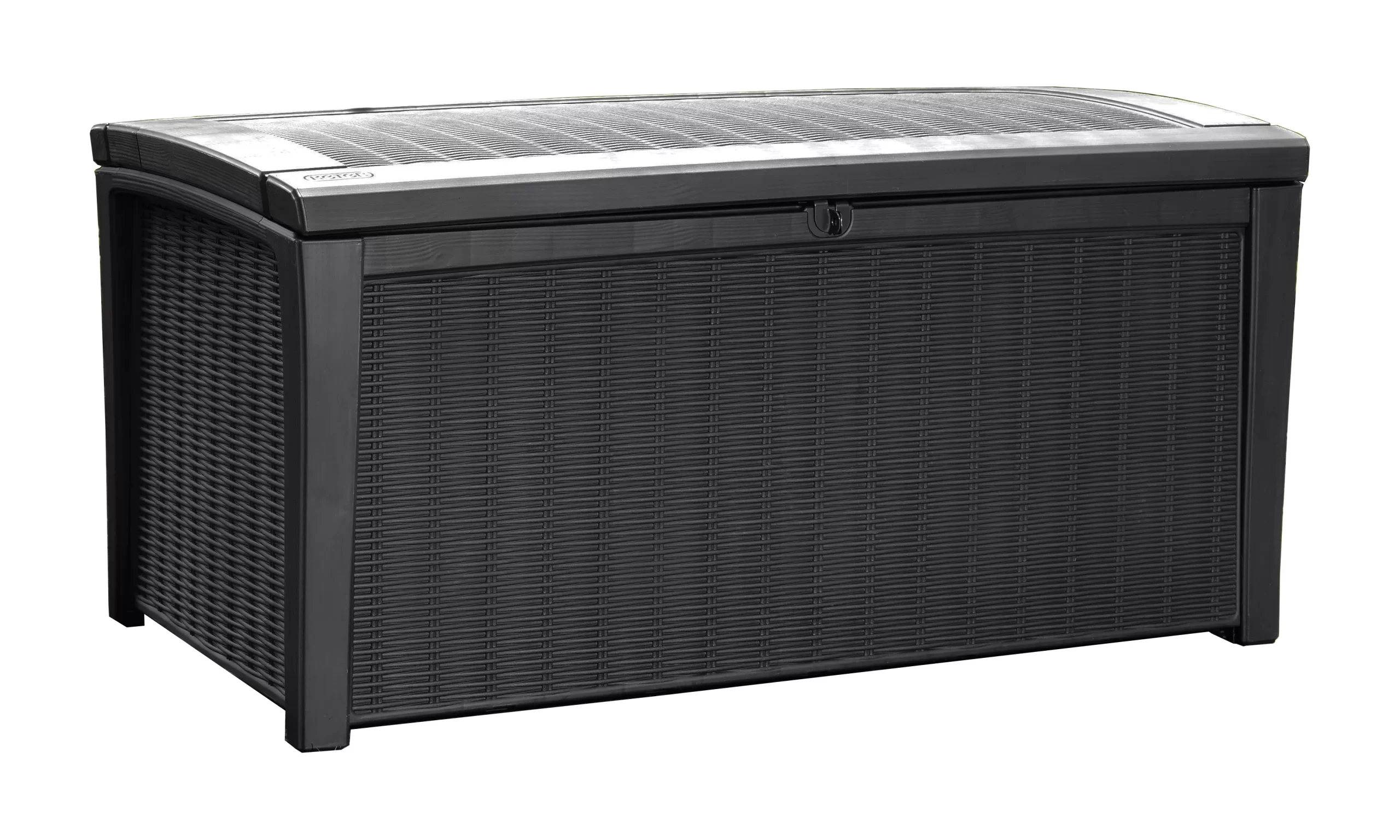 An ideal outdoor addition to any garden for those who like their storage solutions both elegant and practical. The Borneo storage box is built out of a low maintenance durable Resin to keep items such as patio accessories and chair cushions dry and ventilated as well as provide full weather resistance. It’s also designed with an elegant wood with wicker/rattan appearance that has a capacity of 416L. The Borneo storage box also comfortably seats two adults, which adds an extra seating option when entering and has a lockable feature with, an automatic opening mechanism for ease.