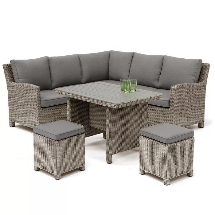 Kettler Palma Mini 7 Seater Corner Set with Polywood Table Top – Natural with Taupe Cushions