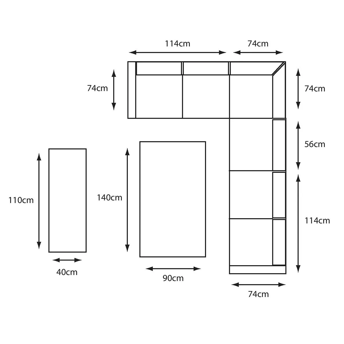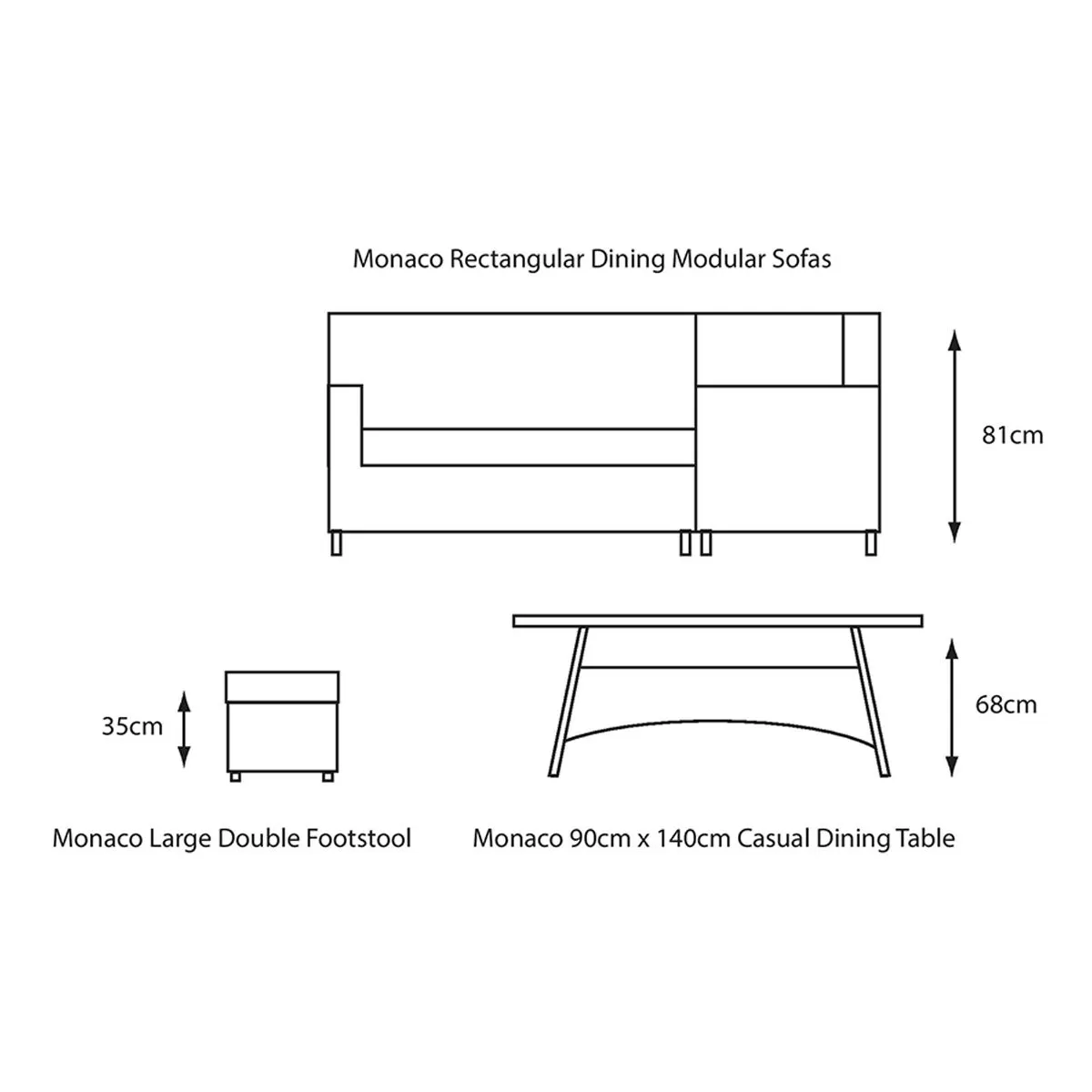 Double Bench: 35cm x 110cm x 40cm (H x W x D)