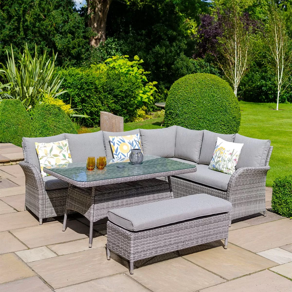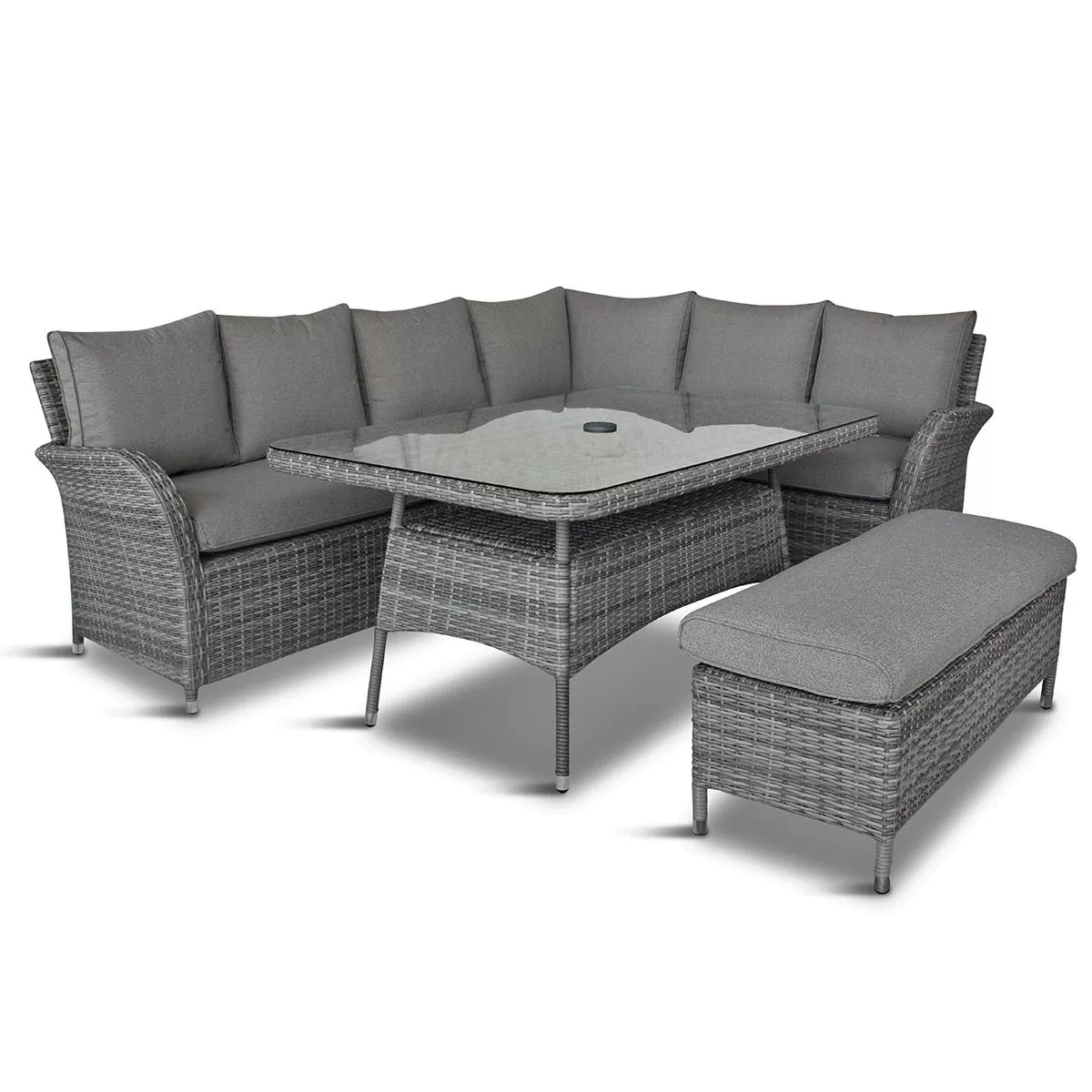 Take some time out this summer to sit back, relax, and enjoy the beautiful outdoors on this stunning Monaco set. With a contemporary corner sofa, double bench, and glass-topped table, it provides the perfect space for you to spend some quality time with family and friends in the sunshine.