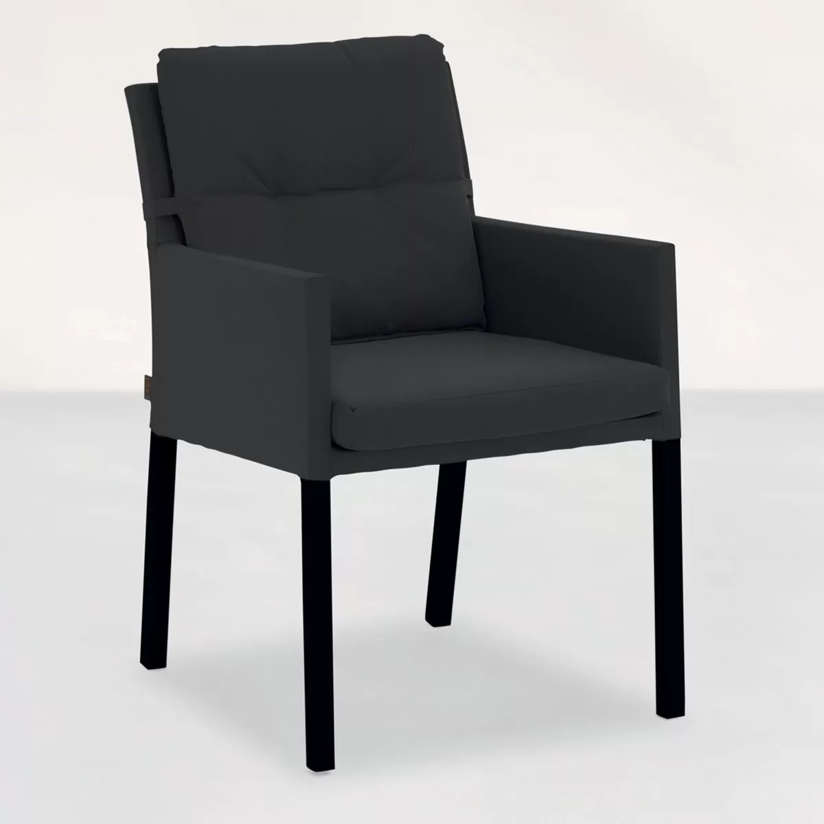 Complementing the table are the 8 Caribbean dining chairs. They follow the same showstopping modern style as the U-framed table, with powder-coated aluminium frames and gentle angles. Each one is covered with all-weather Textilene fabric with matching, quick-dry, sumptuously soft, carbon-grey coloured cushions for extra comfort.