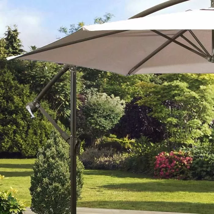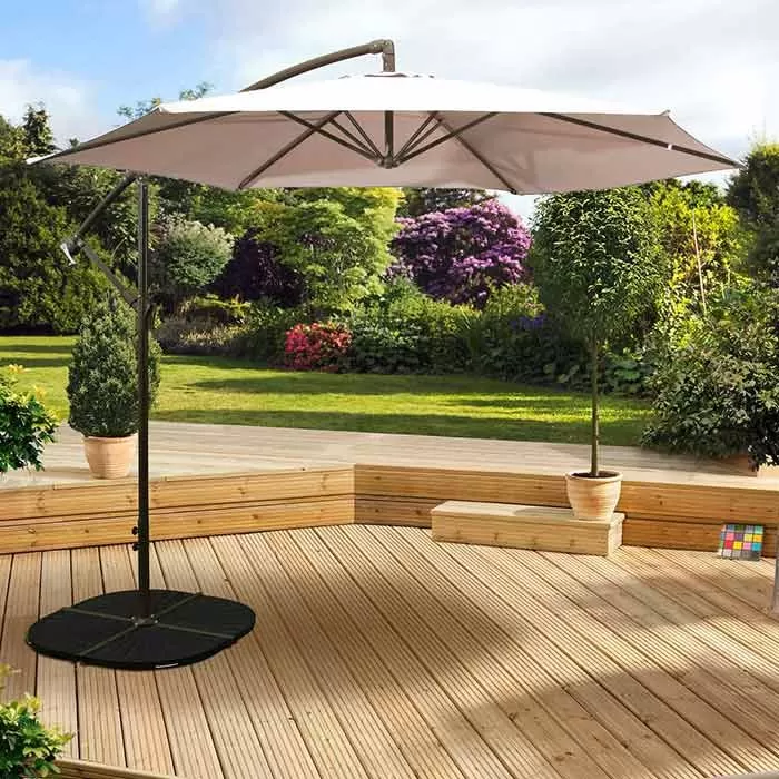 If you have a large patio set and are looking to provide some shade, the Overhanging Parasol from Pagoda is an ideal choice. Thanks to its overhanging design, the pole which supports the parasol will no longer have to interrupt your dining set. Affording you so much extra space thanks to the placement of the pole and the stand not being directly under the canopy itself, this parasol is ideal for parties or gatherings where shade is at a premium, keeping everything out of the way and allowing you more room for furniture. The parasol canopy has been made from black showerproof polyester, meaning its stylish and modern design is great for almost any garden.