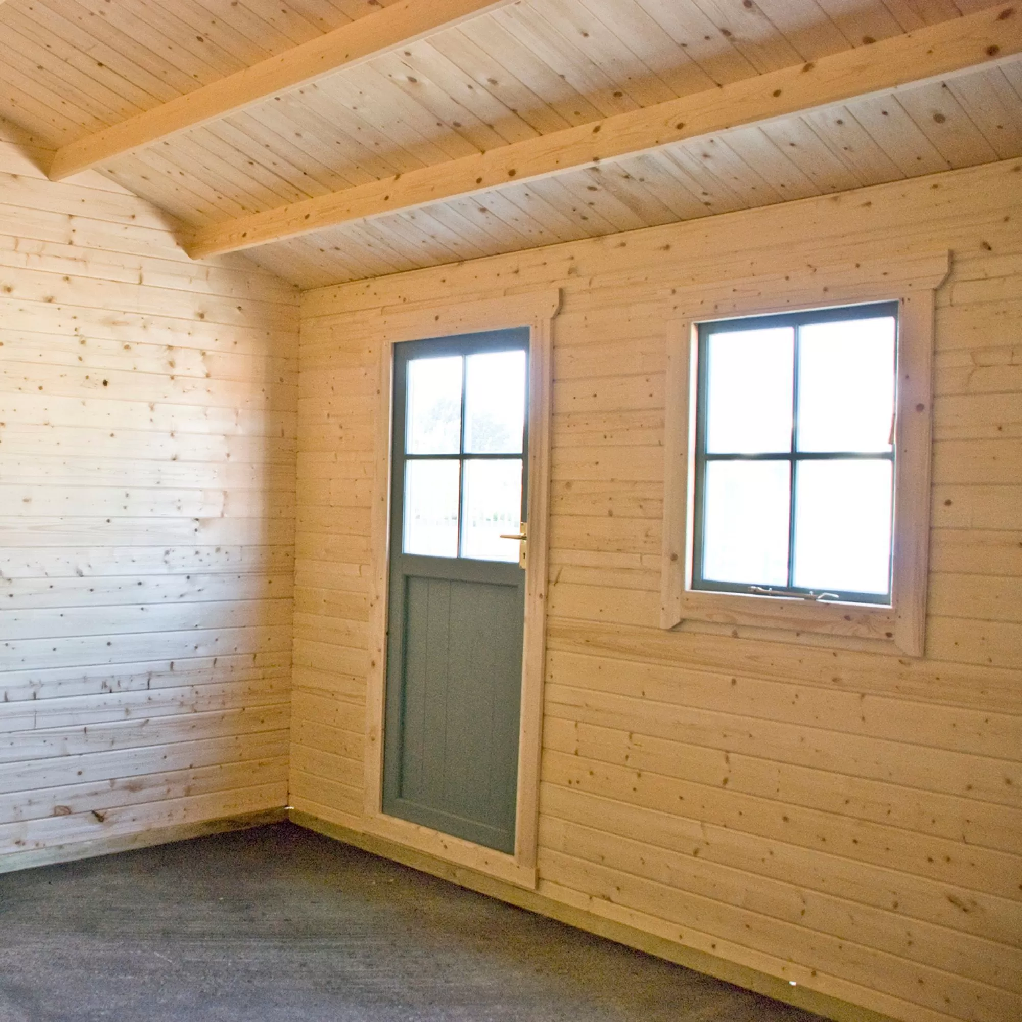 - 34mm tongue and groove log profile with Interlocking joints at the corners