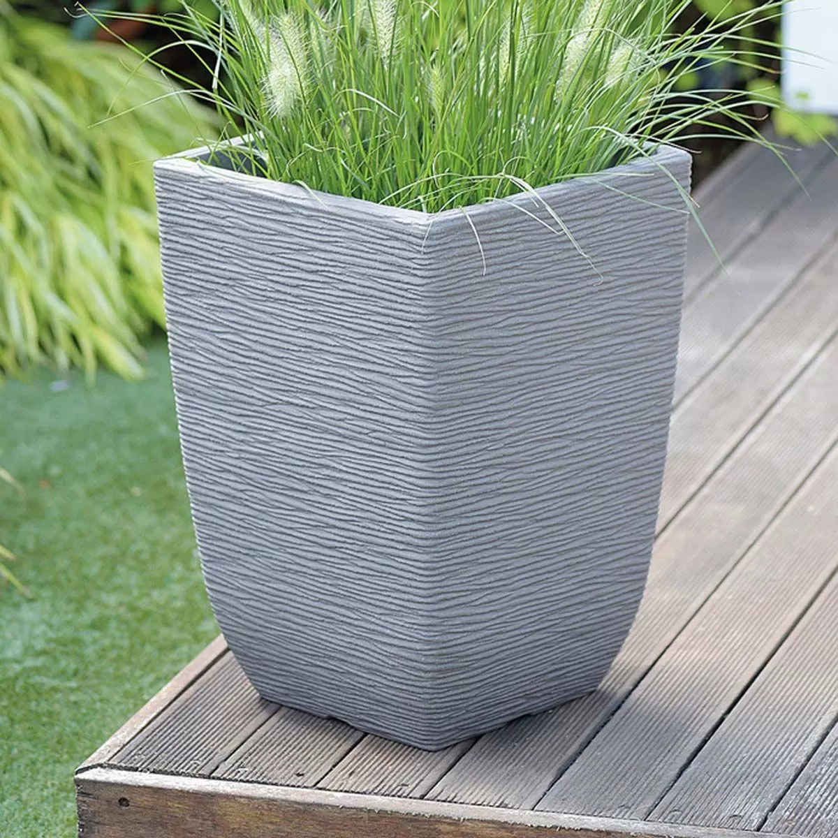 Stewart Garden Cotswold Tall Square Planter, Limestone Grey – 33cm