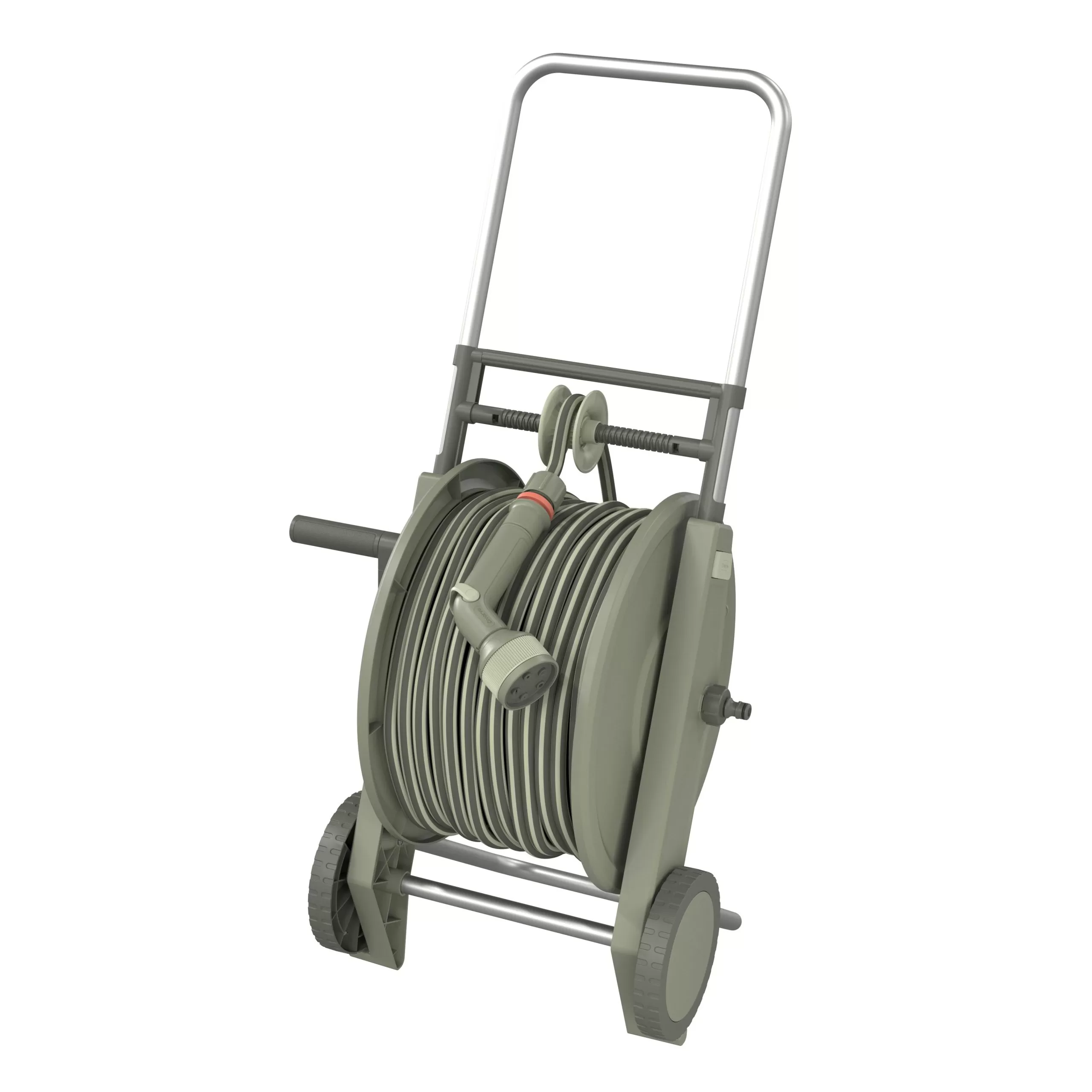 We’ve included all the connectors (3 standard & 1 aquastop, 1 tap connector), 40m hosepipe and a spray gun to get you started. This cart features an auto guide to help with easy rewinding and hose storage.