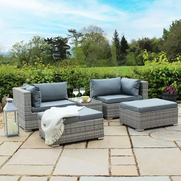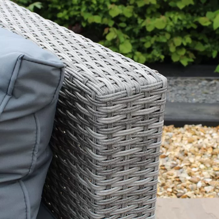 The durable frame is made from lightweight powder coated steel all beautifully covered with all-weather synthetic grey coloured wicker for a modern yet inviting appeal.
