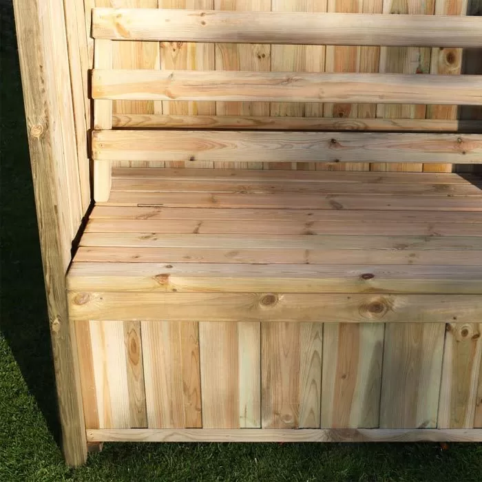 Detailed with an elegant sloped roof and pretty diamond trellis, providing extra shelter from the rain but allowing sunshine to peek through. Beneath the comfortable seat there’s a handy storage box that’s perfect for hiding away your cushions or throws whilst you’re outside, or even popping away some garden tools.