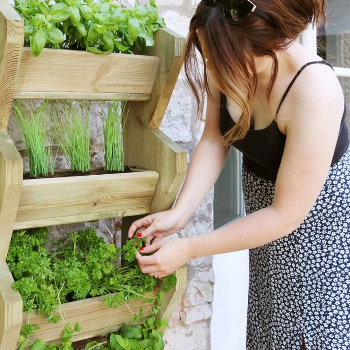 At 1.39m tall with a slimline design, this upright planter offers easy access and high-quality construction. It features five individual angled troughs which allow for maximum light exposure and is perfect for growing healthy crops of herbs or even beautiful cascading flowers. This high-quality Vertical Herb Stand is made from 40mm thick FSC® sustainable timber and has been pressure treated to ensure a long life. A great choice of growing space for any garden.
